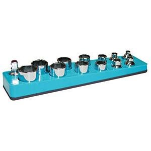 Product Description : MTS711 Features: -Our socket organizer is designed to hold a standard 11-piece English or metric set with 1 additional hole for extensions or universal joints..-Accommodates 7/32 thru 7/8 SAE and/or 5.5 thru 22mm..-Neon Blue.-3/8 in. Drive Magnetic Blue Socket Holder 5.5-22mm. Warranty: -1 yr warranty on material and workmanship.